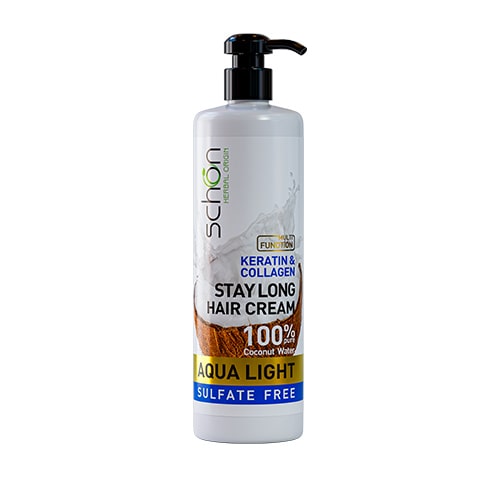وجود کلاژن در کرم مو آکوالایت شون که حاوی ترکیبی از اسیدآمینه‌ها است، ضخامت تارهای مو و سلامت آن‌ها تضمین شده و ضمن جلوگیری از ریزش مو، مشکلاتی چون خشکی و شکنندگی موها نیز رفع می‌شود.