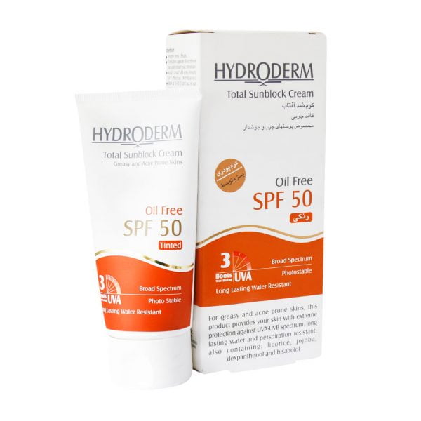 کرم ضد آفتاب SPF50 فاقد چربی مناسب پوست چرب هیدرودرم (بژمتوسط)