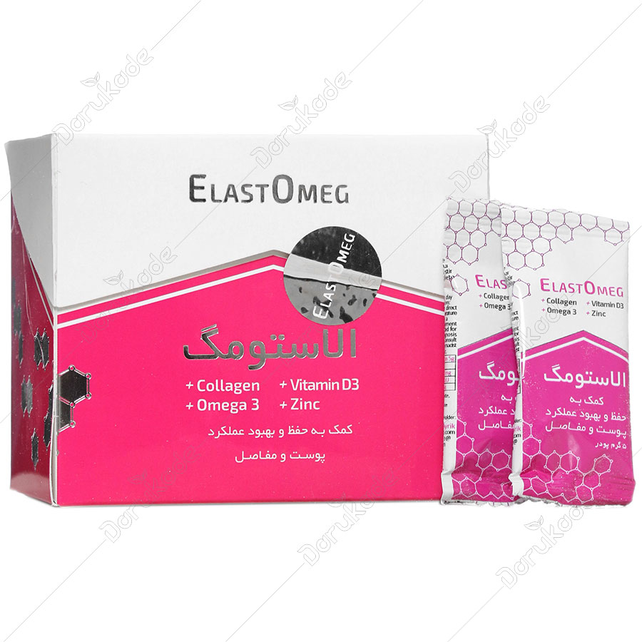 ساشه الاستومگ 20 عددی کلاژن یک مکمل تغذیه ای مناسب حاوی کلاژن بوده که نقش موثری در بهبود شرایط جسمی و فیزیولوژیک بدن دارد و می تواند باعث افزایش ضخامت غضروف بین مفصلی شود. این ساشه حاوی منیزیم، کلاژن، زینک، امگا 3 و ویتامین دی می باشد و می تواند باعث بهبود عملکرد پوست و مفاصل شود.